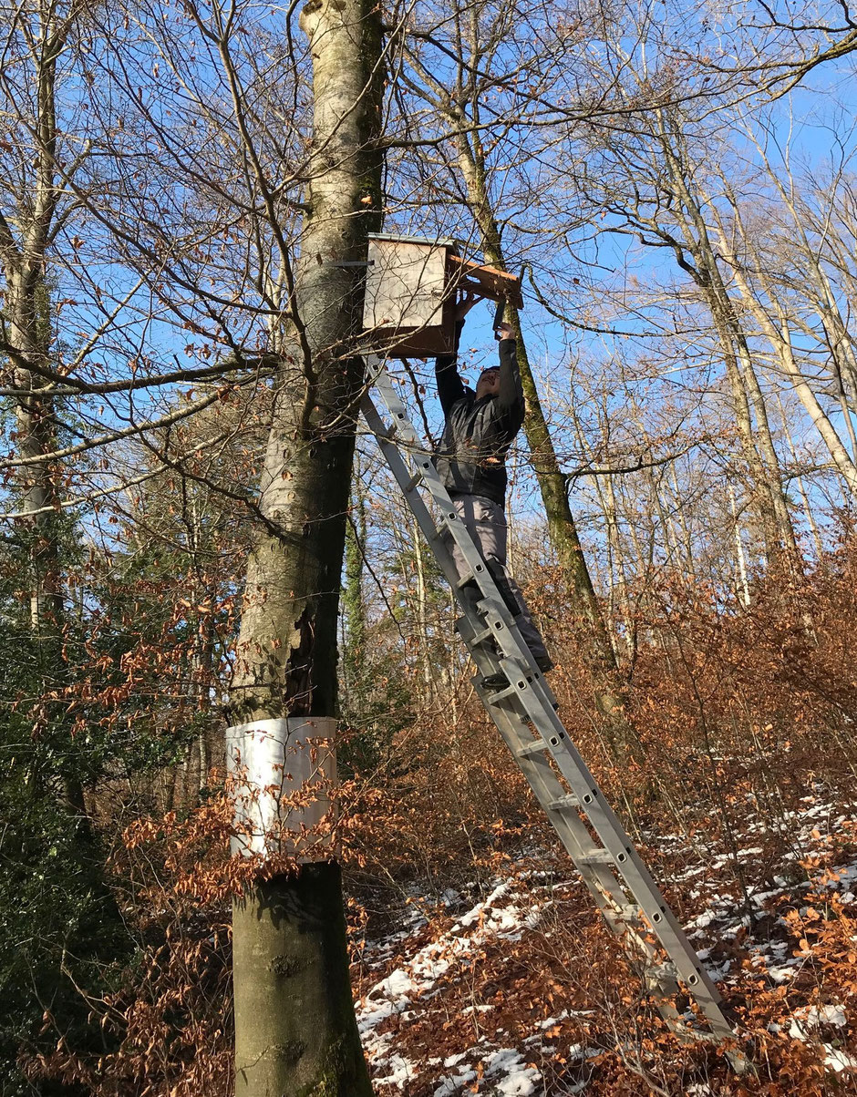 An vier freien Samstagen haben zwei Vorstandsmitglieder unsere bestehenden Waldkauzkästen gewartet, einige davon umplatziert und das Wohnungsangebot mit neuen Kästen ergänzt und verdichtet. Vorgängig wurden die neuen Standorte mit unserem Revierförster Martin Blattner begutachtet und von ihm gutgeheissen. Auch haben private Waldbesitzer ihre Zustimmung zum Aufhängen eines Kastens gegeben. Insgesamt stehen den Erlinsbacher Waldkäuzen nun 11 Wohnungen zur Aufzucht von Jungen zur Verfügung. Zwei weitere Kästen werden folgen. Den Nistkasten in der Barmelweid haben wir aufgegeben.